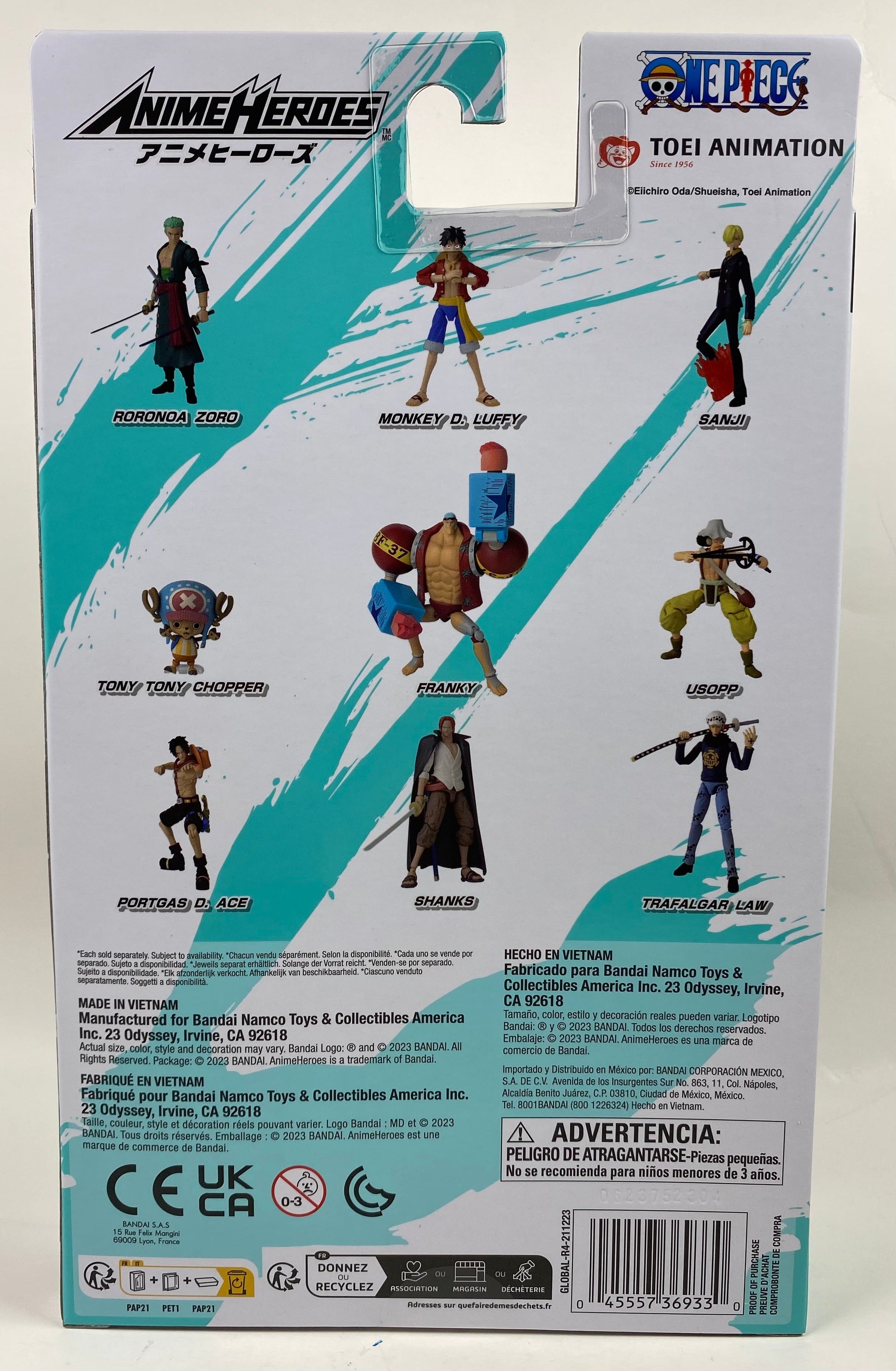 Making his way into Bandai's Anime Heroes line is the chef of the Straw Hat Pirates from Eiichiro Oda's One Piece anime and manga! Standing at 6 1/2-inches tall with over 16 points of articulation and accessories, Vinsmoke Sanji can be posed in hundreds of positions.