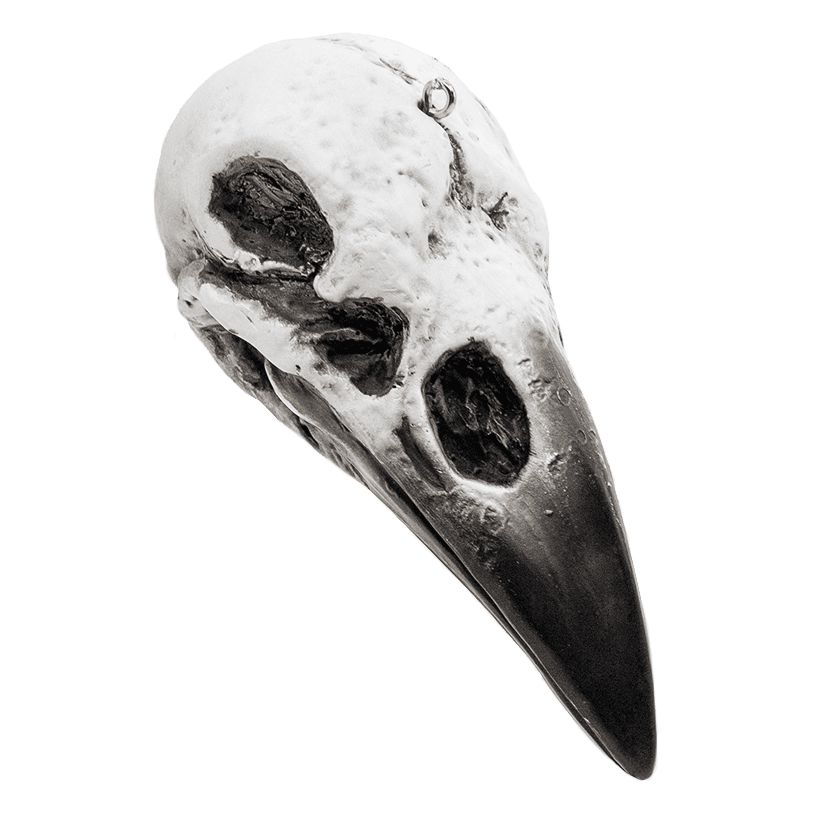 Once the right hand to the most domineering witch, all that remains of this beautiful bird is the skull she left behind. Gone are her coarse black feathers and all-seeing eyes. Now, her remains stay as a symbol of the freedom that comes from the sweet release of death.