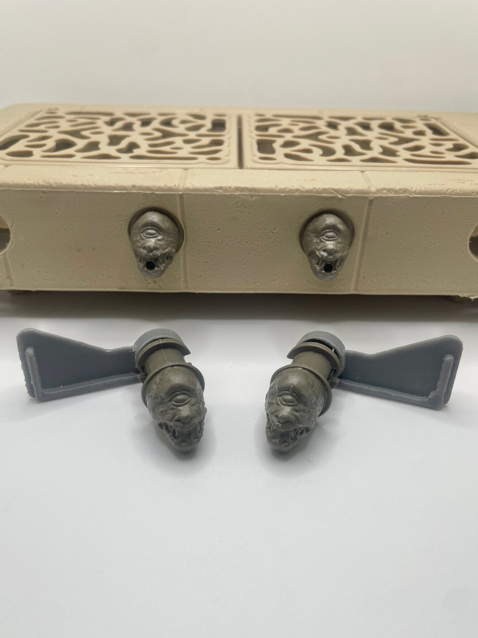 This listing is for a replacement set of REPRODUCTION 1983 Jabba The Hutt Playset Gargoyle door hinges.